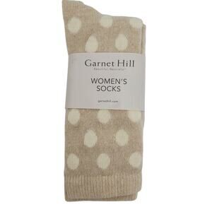 Garnet Hill Dot Socks Size 9-11 Warm Cozy Cashmere Blend Soft Crew Cream & Ivory