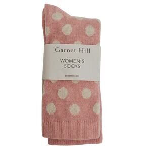 Garnet Hill Dot Socks Size 9-11 Warm Cozy Cashmere Blend Soft Crew Lt Pink White