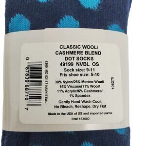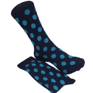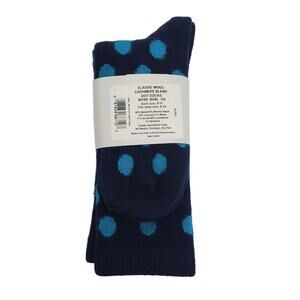 Garnet Hill Dot Socks Sz 9-11 Warm Cozy Cashmere Blend Soft Crew Navy Blue Teal