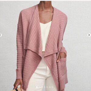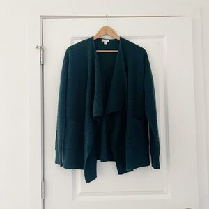 Garnet Hill Drape Front Cabled Cashmere Cardigan Pockets Jade