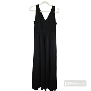 Garnet Hill Dress Black Maxi V Neck, sz 8
