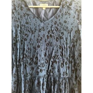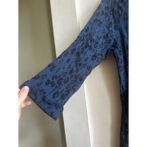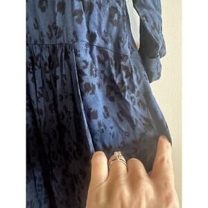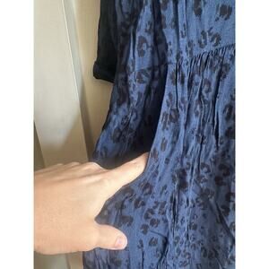 Garnet Hill Dress Size 6 Blue Bohemian Pocket Dress Mini V Neck Leopard Print