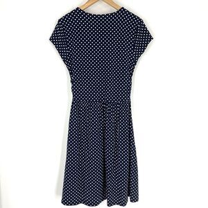 Garnet Hill Dress Size 8 Womens Navy Polka Dot Garden Party Knit Twist Front