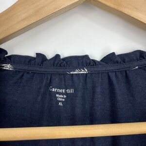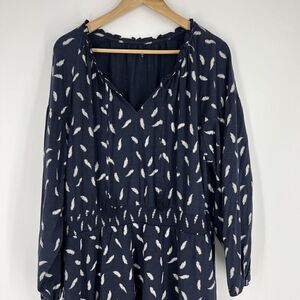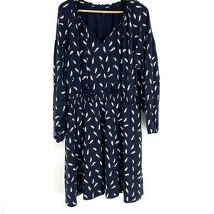 Garnet Hill Dress Size XL Navy Feather Print Boho Tassels Smocked Waist V Neck