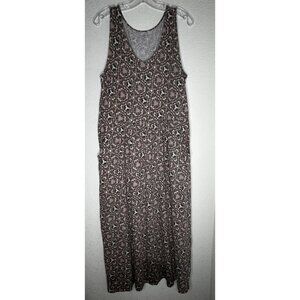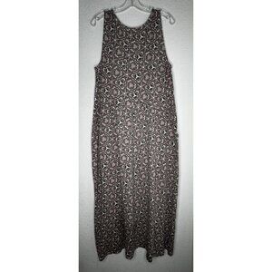Garnet Hill Maxi Dress Womens Large Brown Geometric Print Sleeveless Pockets Boho