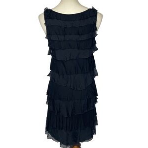 Garnet Hill Dress Womens Small Black Jersey Knit Tiered Ruffle Layers Sleeveless Scoop Neck. Good pre-owned condition. Dress and lining have been hemmed. Care/ Materials tag has been removed. See pictures for details. See photos for measurements. Ships quickly from smoke-free home.