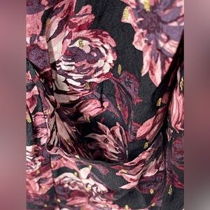 Beautiful burgundy and mauve floral print with shimmery gold flecks