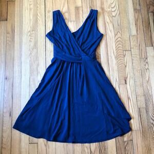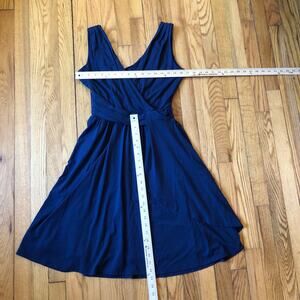 Garnet Hill EUC Women's Navy Blue Faux Wrap Sleeveless Dress Size S