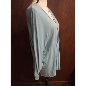 Garnet Hill Easy Linen Drape Front Cardigan Size XS Aqua Coastal Lagenlook Beach