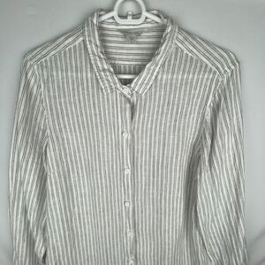 Garnet Hill Easy Linen Tunic Top Womens Small White Gray Stripe Linen Button Up