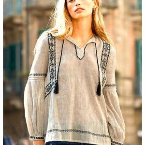 Garnet Hill Embroidered Blouson-Sleeve Blouse- Size 8