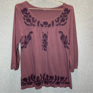 Garnet Hill Embroidered Boho Cotton/Modal Elastic Cuff Top