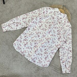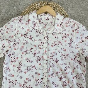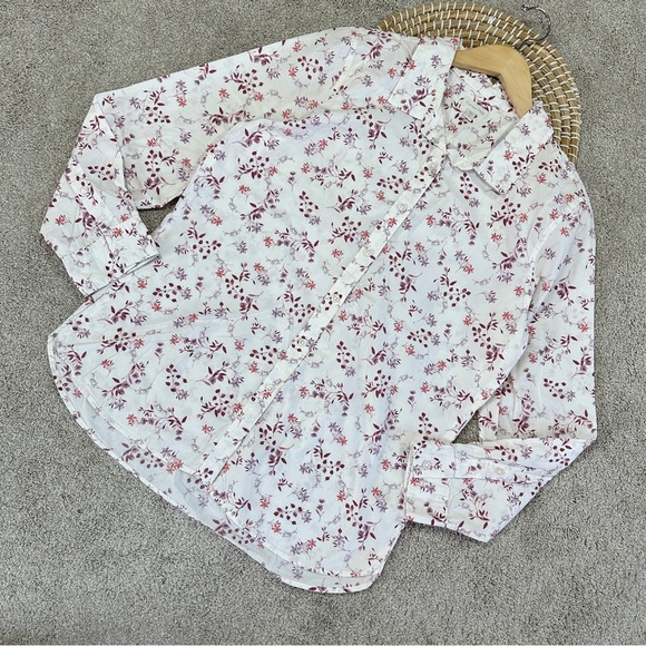 Garnet Hill Essential Organic-Cotton Button Down Shirt Longsleeve Floral Size 12