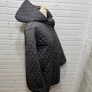 Garnet Hill Essential Quilted Car Coat Gray Sz 8 Wrinkle Water Resistant Classic