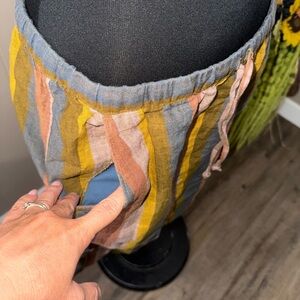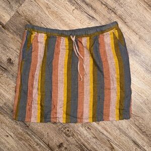 In like new condition. No signs of wear. Has elastic drawstring waist and pockets. Neutral colored stripes. Size small. I believe could also fit a medium.