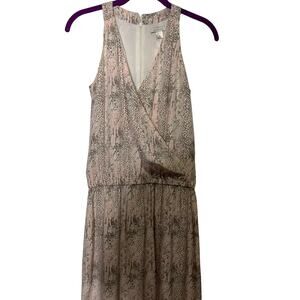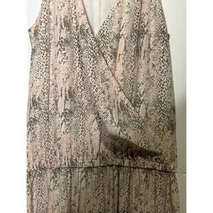 Garnet Hill Faux Wrap Dress Women's Size 6 Silk Snake Print V-Neck Elastic Waist