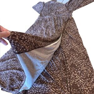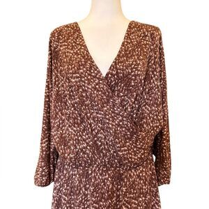 Garnet Hill Faux Wrap Maxi Dress Brown Stretch Tencel Jersey V Neck Womens Large