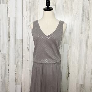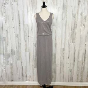 Garnet Hill Festive Sequin Tank Maxi Dress Gray Wedding Party Preppy Size S