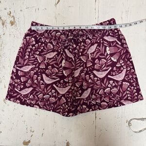 Garnet Hill Flannel Pajama Shorts L 100% Organic Pima Cotton Peru Floral Bird