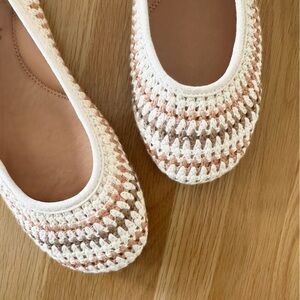 Garnet Hill Flats Shoes Womens 10 Mable Ivory Tan Crochet Round Toe New