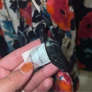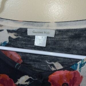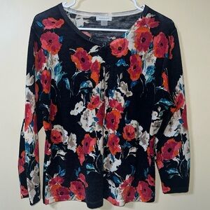 Garnet Hill Floral Black and Red Cardigan Large Merino Wool