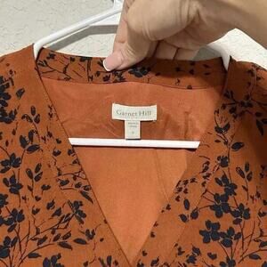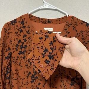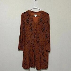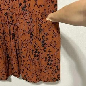 Garnet Hill Floral Drop Waist Dress Women’s Size 2 Button Up Pockets Navy Orange