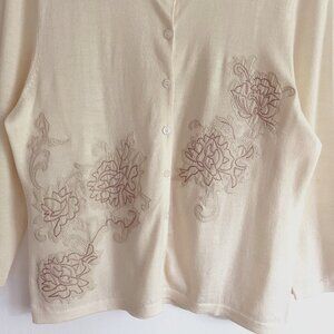 Garnet Hill Floral Embroidered Merino Wool Cardigan Sweater