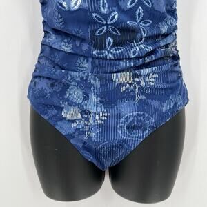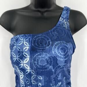 Garnet Hill Floral One Piece One Shoulder Swimsuit Bathing Suit Blue Ruched Sides Stretchy