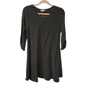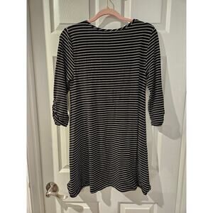 Garnet Hill French Terry A-Line Tunic Black white stripe Womens small