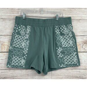 Garnet Hill Geometric Print Sweat Shorts Women's Size Large Green/Blue