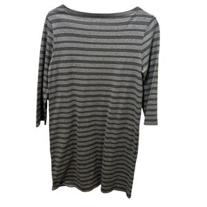 Garnet Hill Gray Black Stripes Organic Cotton Bateau Neck Shift Dress Pockets Size 6 Women Features: 100% organic cotton. Light gray with darker gray stripes. Bateau neckline. Shift. Pockets.