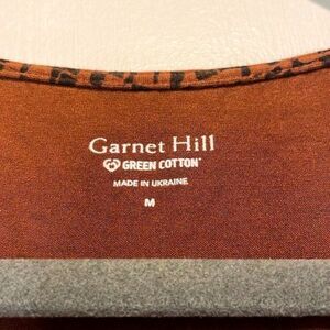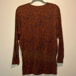 Garnet Hill- Green Cotton Brown & Black Square Pattern V-Neck Top- Size Medium