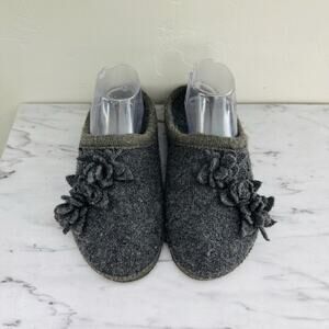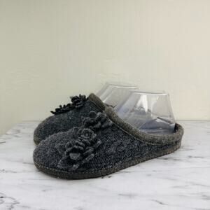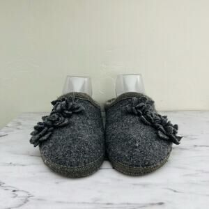 Garnet Hill Haflinger Charisma Charcoal Wool Flower Slippers Women’s Size 8