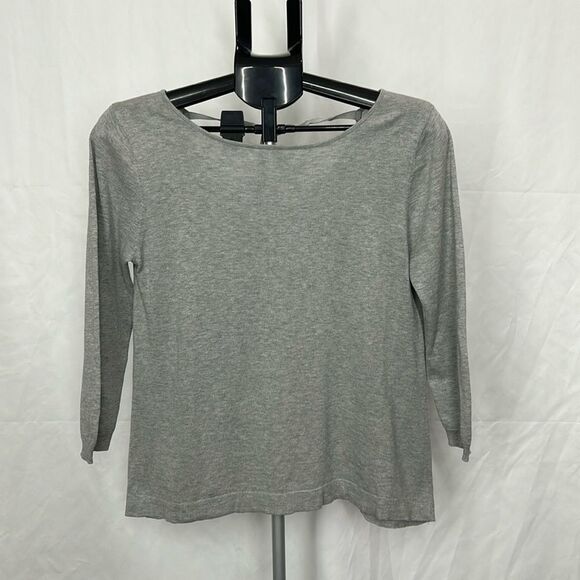 Garnet Hill Heathered Grey Silk Cotton Blend Sweater Knit Top Tie Back 33681 super cute for fall lightweight top super cute with jeans and boots the bottom has a super super light stain I didn’t even notice till the ring light was on it but wanted to point it out size small high quality so comfy and cute ribbed tie behind neck Always open to offers bundle and save more! Always fast shipping!