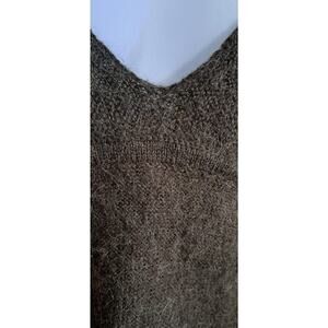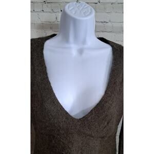 Garnet Hill Henley Sweater Top Sz S Hairy Alpaca Blend Low Deep Knit Brown