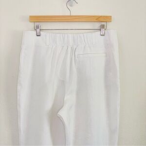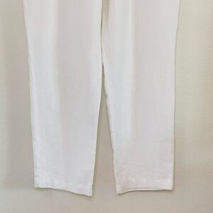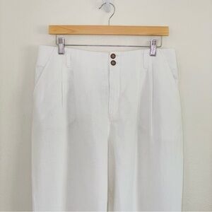 Garnet Hill High Waist Pleat Front Straight Leg Linen Trouser Pant in White, Size 12.