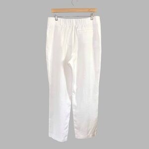 Garnet Hill High Waist Pleat Front Straight Leg Linen Trouser Pant White 12
