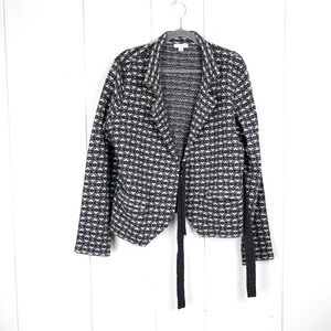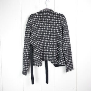 Garnet Hill Jacket Women SZ L Lambswool Tie Front Abstract Geometric Cozy Casual