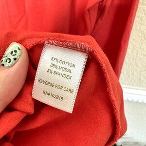Up for sale is a - Garnet Hill Jersey Midi Dress Cotton Stretch Orange Red Size Medium 3/4 Sleeve