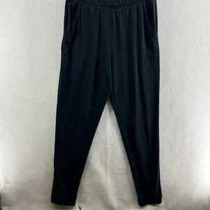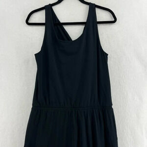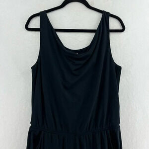 Garnet Hill Jumpsuit Women's Sz 8 Black Round Neck Wide Strap Tapered Stretch