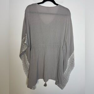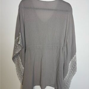 Garnet Hill Kaftan Tunic Top Beach Coverup Crinkle Cotton Gray Embroidery S
