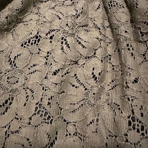 Girls medium size olive green skirt, full lined with 100% cotton stretchable material. The entire skirt is 80% cotton and 20% nylon. It is in good used condition. Open lace pattern. Size Medium (6/7)