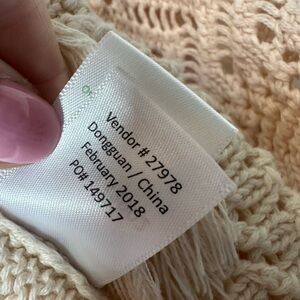 Garnet Hill Kids Poncho Cream Crochet Large Organic Cotton Boho Fringe Western