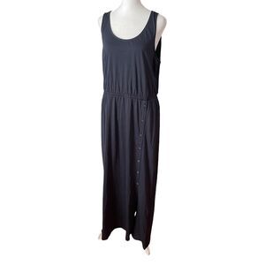 Garnet Hill Large Tank Maxi Dress Dark Blue Button Slit Cotton Tencel