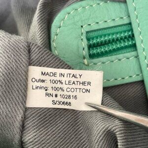Garnet Hill Leather Purse. Bag. Green. Made in Italy. Double Handles & Shoulder Strap. Excellent condition. Minor signs of wear. Please see photos.