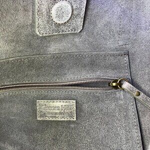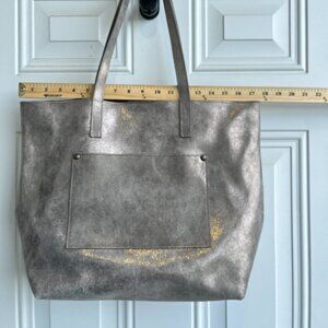 Garnet Hill Leather Tote Functional Pockets Suede Interior Shimmering Gray W L