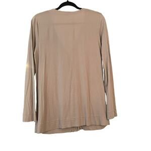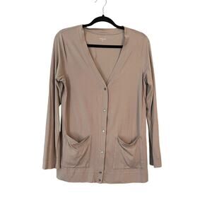 Garnet Hill Light Brown Light Cardigan M Pockets Green Cotton Minimalist Cozy