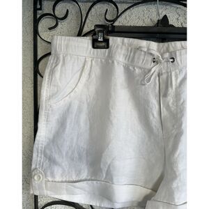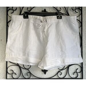 Garnet Hill Linen Cuffed Shorts - Size 18 - White