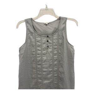 Garnet Hill Linen Dress Womens 8 Gray Embroidered Button Up Cotton Lining Boho