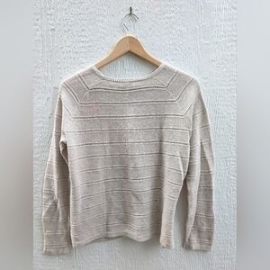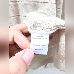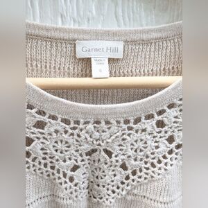 Garnet Hill Linen Organic Cotton Beige Neutral Knit Crochet Sweater Size Small
